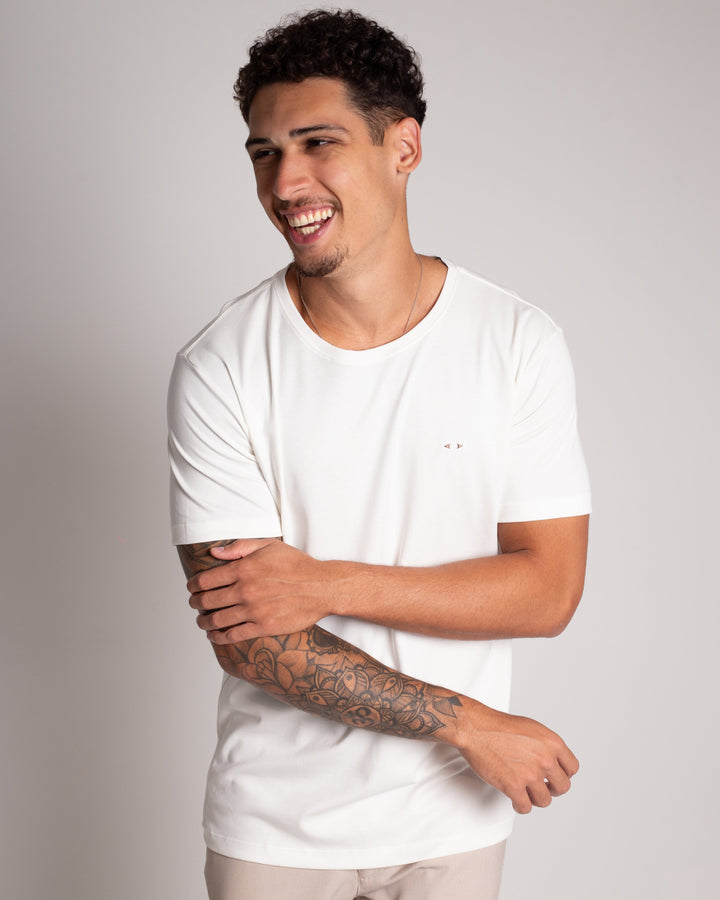 Com um design limpo, sofisticado e atemporal, essa camiseta traduz a essência do estilo discreto e elegante. Sem excessos, mas com detalhes que fazem toda a diferença, ela valoriza a simplicidade aliada à qualidade impecável.